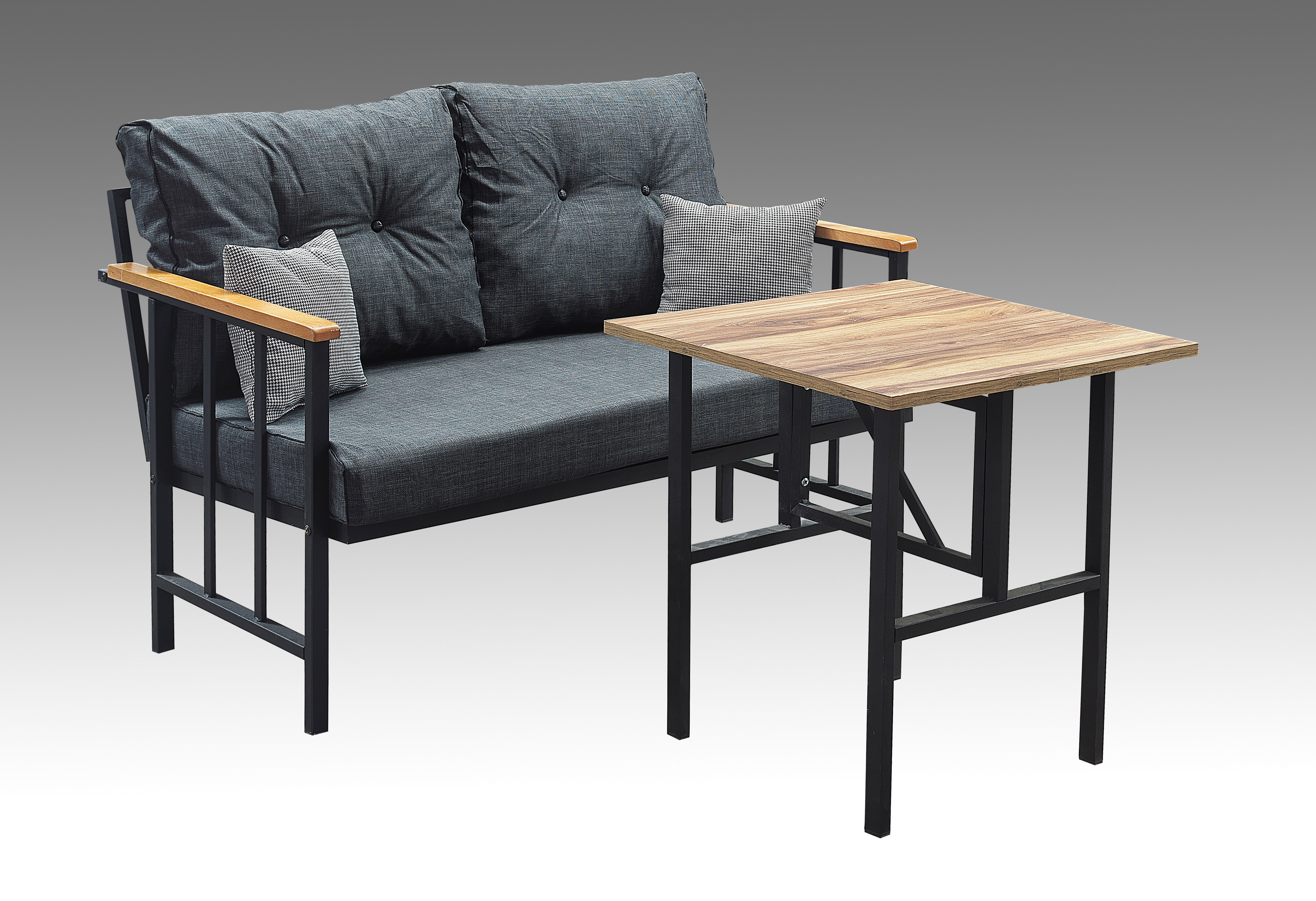 2 li set olup keten ANTRASİT KOYU GRİ kumastan üretilmistir antrasit kumasın muhtesem uyumuyla kullanım alanınızın ambiyansını degistirecektir.dayanıklı ve saglamdır ayrıca demonte bi üründür yani sök tak kurulumu kolay ve basittir.20x20 ve 20x30metal profilden üretilmistir.profil kalınlıgı 1 mm dir.metal kısımları fırınlı boya ile boyalıdır ve saglık yönünden hic bir tehdit unsuru tasımamaktadır.kumasımız keten olup reguledir.dijital ortamda ve ekran farklılıklarından kaynaklı renk 1-2 ton farklı görünebilirkol üstü ahsapımız 1.ci sınıf gürgen agacından yapılmıstır.minder ve kırlentlerimiz fermuarlıdır ve yıkanabilmektedir 30 derecede .kullanım alanları iç ve dıs mekan balkon teras bahce vb gibi alanlardir.minderleri 22 dns sert sünger dir rahat bi oturum saglamaktadır kırlentleri ise kırpık süngerden olusmaktadır ürün ölcüleri 2 lı koltuk dıstan dısa 122 cm dir uzunluk 60 cm de derinlikyani oturum alanına sahiptir.Rahat ve konforlu bi oturum imkanı saglamaktadır.Orta sehpamız en 60 cm boy 60 cm yükseklik 50 cm dir